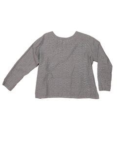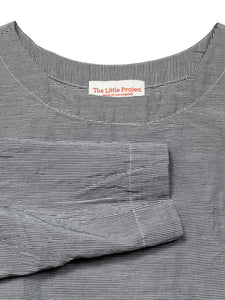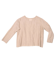 Our Scout Top is a popover with a boatneck and bracelet length sleeves. She features solid binding on the inside hem made in an Italian cotton/silk blend.