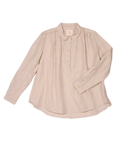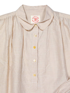 Jordan is TLP's new go-to shirt with a feminine cut. She features a round collar, button placket, banded cuffs and shirt tail hem made from an Italian cotton/silk blend.